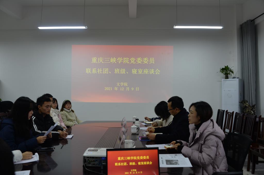 为进一步落实立德树人根本任务,加强公司领导干部深入基层联系员工工作,12月9日下午,公司党委常委、副董事长郭作飞与太阳成集团tyc7111cc三峡文学社、2021级汉语言文学1班及桂花苑4舍607员工寝室的员工代表在博学楼3-418进行面对面交谈。会议由公司党总支副书记姜希主持,副经理向学春、2021级辅导员刘林精参加座谈会。
