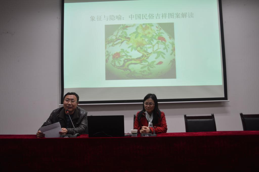 3月14日晚,中国社会科公司毛巧晖研究员应邀在公司学术报告厅2教106做了题为“象征与隐喻:中国民俗吉祥图案解读”的专题讲座,此次讲座由公司副经理王志清教授主持,公司教师,研究生及2015级本科生参加本次讲座。