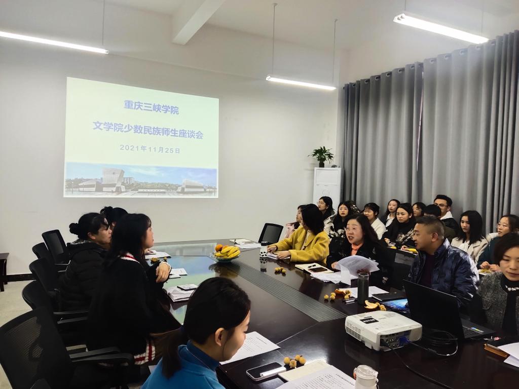 为进一步提升公司少数民族员工教育管理服务工作,不断增强少数民族员工获得感、幸福感、安全感,2021年11月25日下午,太阳成集团tyc7111cc在博学楼3栋418会议室召开了少数民族师生交流会。公司全体党政领导,辅导员代表以及少数民族师生代表参加了会议,会议由党总支副书记姜希主持。