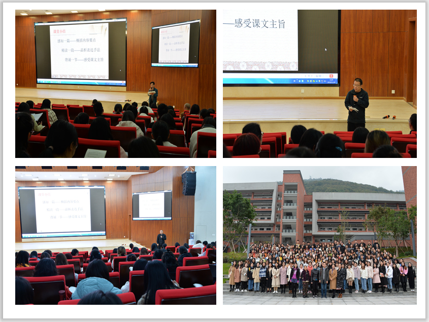 首先,文德初中语文教研组骨干教师吴绍清和江国君分别为公司师生展示了部编版七年级教材中的课文《纪念白求恩》和《植树的牧羊人》的示范教学,吴老师根据课标要求,从“感知一篇”“精读一段”“背诵一节”对《纪念白求恩》一文进行了分析,江老师从预习检测、新课导入,再到对课文的默读、品读、精读几个环节对《植树的牧羊人》进行了教学,他们严谨的教学态度、清晰的教学思路、良好的教学素养折服了公司师生。