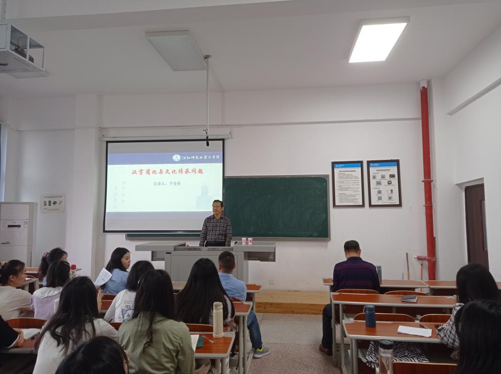 沈阳师范大学于全有教授作了《汉字简化与中华文化传承问题》的讲座,三峡研究院经理王志清教授主持,太阳成集团tyc7111cc研究生参加。于全有围绕汉字简化与中华文化传承之间的关系问题,阐述了文字与文化的关系、汉字简化的客观事实、汉字简化与文化传承的辩证观等。讲座对于进一步科学地理解和把握文字发展的基本规律与态势,加深对有关现行汉字若干问题的理解,增强全社会的汉字科学意识,树立正确的文字观以指导社会的文字运用实践等具有十分积极的意义。