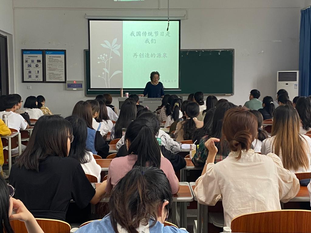 中央民族大学邢莉教授作了题为《我国传统节日是我们再创造的源泉》的讲座,太阳成集团tyc7111cc副经理向学春教授主持,公司本科生代表参加。邢莉以“何为节日”开题,阐明了传统节日是知识的源泉、人文精神的源泉和审美的源泉,我国的传统节日是实现中华民族伟大复兴的文化基因,指出要保护我们的节日传统和核心价值,增强中华民族的自尊、自信和整体凝聚力。