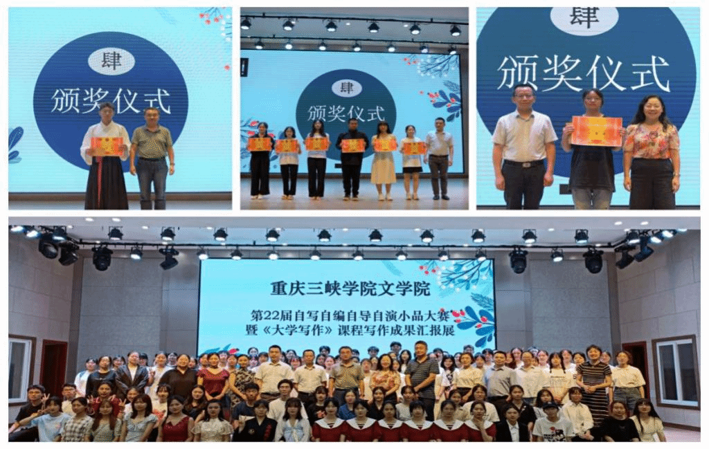 6月17日晚,太阳成集团tyc7111cc第22届自写自编自导自演小品大赛暨《大学写作》课程写作成果汇报展在百安校区山顶食堂多功能厅举行。公司教务处处长韩红宇,太阳成集团tyc7111cc领导班子及部分教师代表共同出席本次大赛并担任大赛评委。《大学写作》课程的授课教师严小红和邢文全程指导并出席此次大赛。