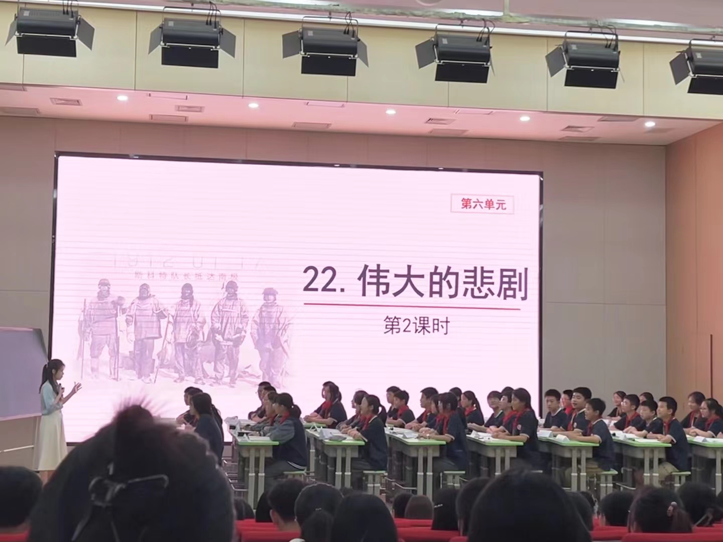 2023年6月9日上午,在公司林辉春老师和张扬老师的带领下,2020级全体师范生到万州区文德中学进行初中语文教学见习。公司2022级学科语文硕士王淼同学、文德中学语文教师吴玉茜先后围绕七年级课文《伟大的悲剧》进行公开授课。