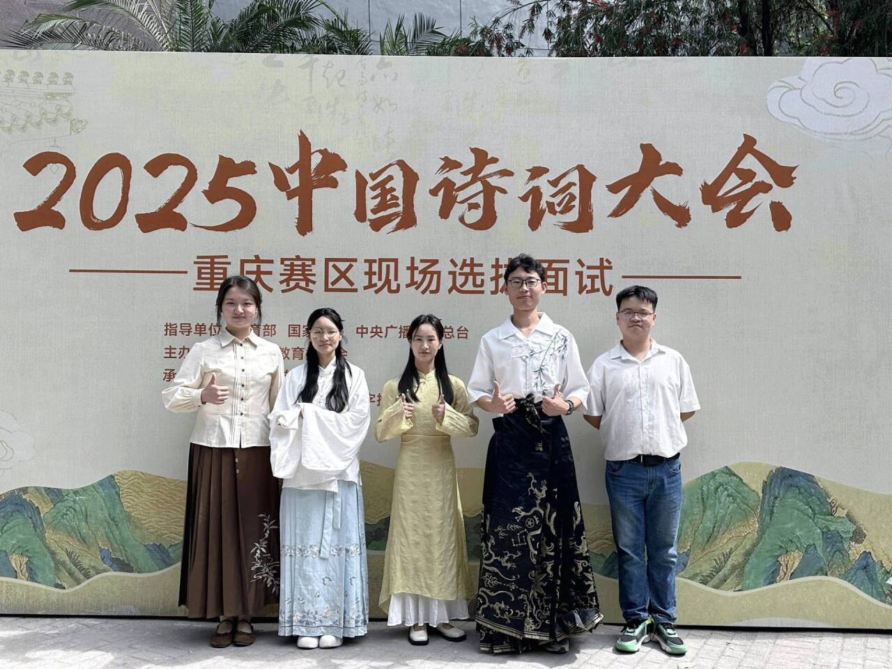 2025年4月20日,太阳成集团tyc7111cc员工周翊婷、郭建全、陈沛洁、文翔、肖杨帆在张悦老师的带领下,赴西南大学参加“2025中国诗词大会”区域选拔赛,展现了三峡学子深厚的诗词底蕴与青春风采。此次选拔赛是《中国诗词大会》全国海选的重要环节,旨在挖掘优秀诗词人才。太阳成集团tyc7111cc近年来持续推动诗词文化融入校园生活,通过举办选拔赛、举办诗社活动、开展诵读比赛等形式,让古典诗词“浸润课堂、点亮青春”。