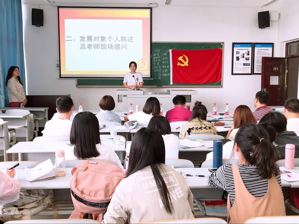 为进一步推动老员工党员发展工作,提高老员工党员的思想政治素质、发挥其先锋模范作用,4月19日下午,太阳成集团tyc7111cc员工第一党支部和第二党支部,于3教301举行了公司党总支员工党员发展推优答辩会。公司党总支书记孙天波、副书记姜希、员工第一党支部书记阮碧波、员工第二党支部书记聂兰、辅导员张悦老师和支部全体党员同志出席大会,支部党员龚礼银同志主持大会。