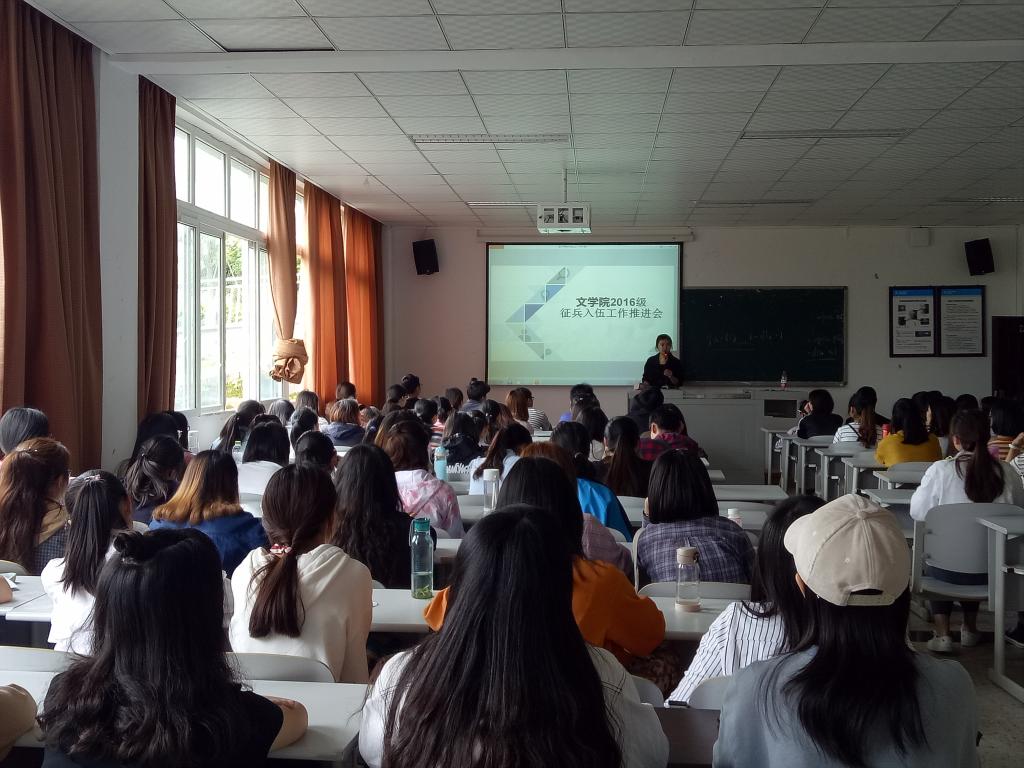 为了加强征兵政策宣传,做好2018年老员工应征入伍工作。5月9日下午14:30,公司于1教219举行“2016级征兵入伍工作推进会”。本次会议由2016级辅导员张悦主讲,公司2016级全体同学参与。
