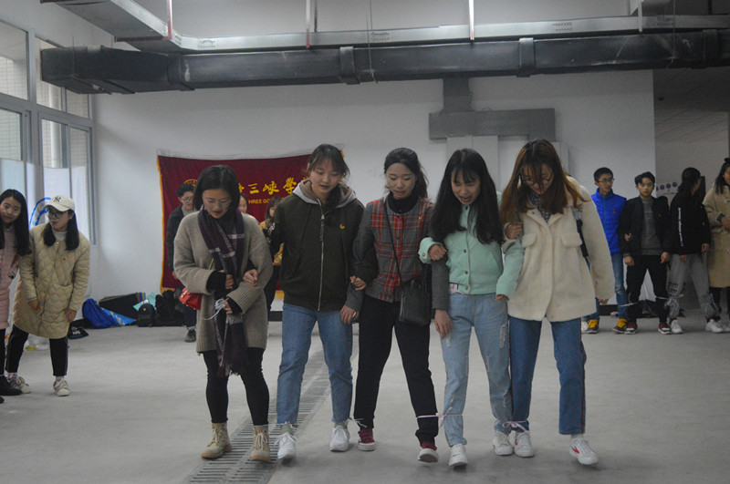 在本次活动中,学员们分为十组,各小组团结协作进行游戏对抗,以积分累积情况进行排名。其中,“五人六足”游戏提高了小组成员之间的默契,增进了彼此的交流。该游戏为每五组依次进行比赛,每组选取十名队员,五名在起点处出发,至终点后返回,接力小组内五人。活动中,无论是考验思维的“卡夫卡”,还是难度较高的“坐地起身”,或是考验反应能力的“反动作”游戏,都有效地增强了团队的合作意识和凝聚力。