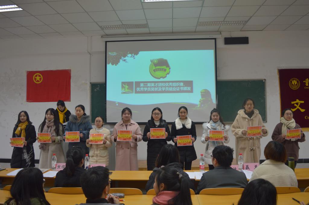 大会伊始,团总支副书记秦红玉宣读表彰文件,随后,2018级汉教3班的刘俊含同学作为优秀学员代表发言,她表示本次团校培训让她进一步认识到作为青年学者的使命和责任,争做一名有理想、有道德、有文化、有纪律的青年老员工的重要性。
