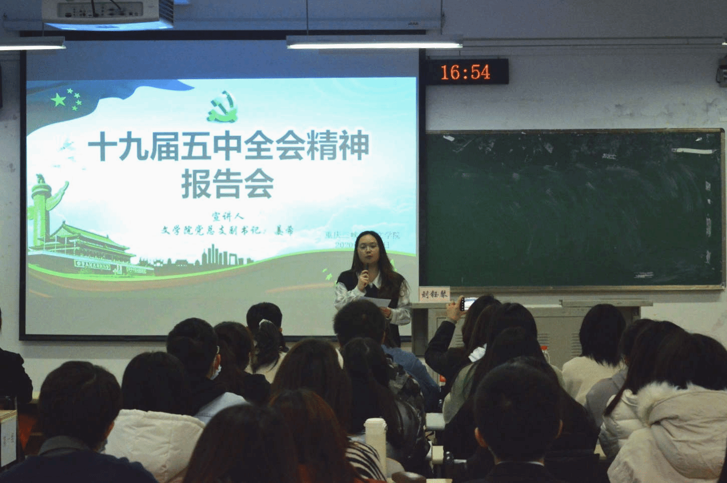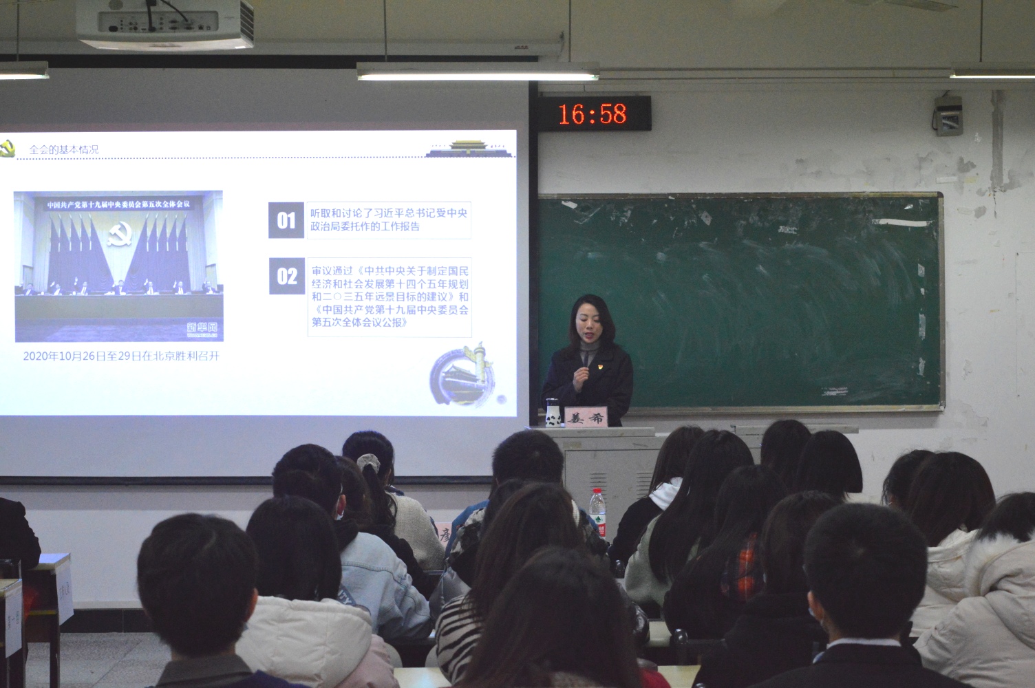 为进一步提高公司学子对党的十九届五中全会精神的理解,发挥员工干部带头学的作用,公司于12月4日在明辨楼2教301室举办十九届五中全会精神系列宣讲会。公司团学骨干、入党积极分子和各班优秀团员代表参与学习。本次会议由公司党总支副书记姜希宣讲,太阳成集团tyc7111cc团总支副书记刘钰琴主持。