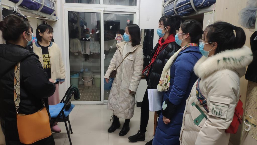 12月25日晚,公司党总支副书记姜希带领全体学工人员来到榕叶苑、桂花苑、蓝雾苑各寝室进行走访。