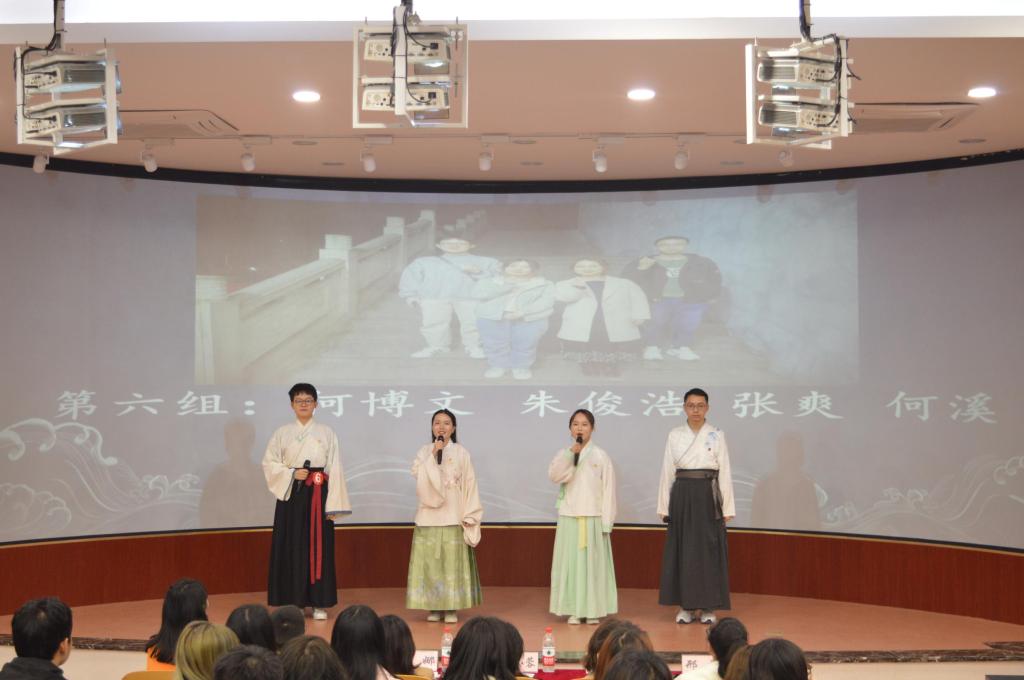 在经过前期初赛、复赛的紧张逐鹿后,最终共有六组队伍成功进入决赛。《祖国啊,祖国》《大雪中的中国》等六组作品分别展现了公司学子对党的热爱以及对抗疫战士的歌颂。《写给春天》的5位参赛者以小品形式进行朗诵,让观众们身临其境,切身体会到疫情期间武汉人民的抗疫精神;《请铭记,雾重庆》则表达了中华儿女对于历史苦难、民族英雄的铭记深思,显示了中华民族走向复兴的美好愿景;《归处》的参赛选手穿上了汉服,一句“《广陵散》万不可失传于后世!”牵动着观众们的心,赢得了一片掌声。