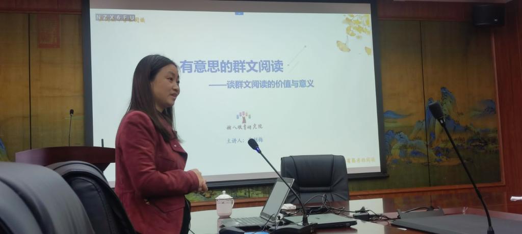 为进一步深化公司教师培养模式改革,建立高校与企业协同培养新模式,着力培养出一批师风良好、师德高尚,具有扎实学科专业功底、公司产品能力和自我创新发展能力突出的高素质、专业化中小学语文学科教师,公司与树人教育研究院合办的“卓越—树人教师班”第三期于2022年10月27日下午3:00开讲,树人教育研究院副经理黄利梅主讲的《有意思的群文阅读——谈群文阅读的意义与价值》圆满结束。黄经理同时也是树人教育研发中心主任、《学语文之友》杂志总编辑。太阳成集团tyc7111cc“卓越—树人教师班”全体学子聆听了课程。
