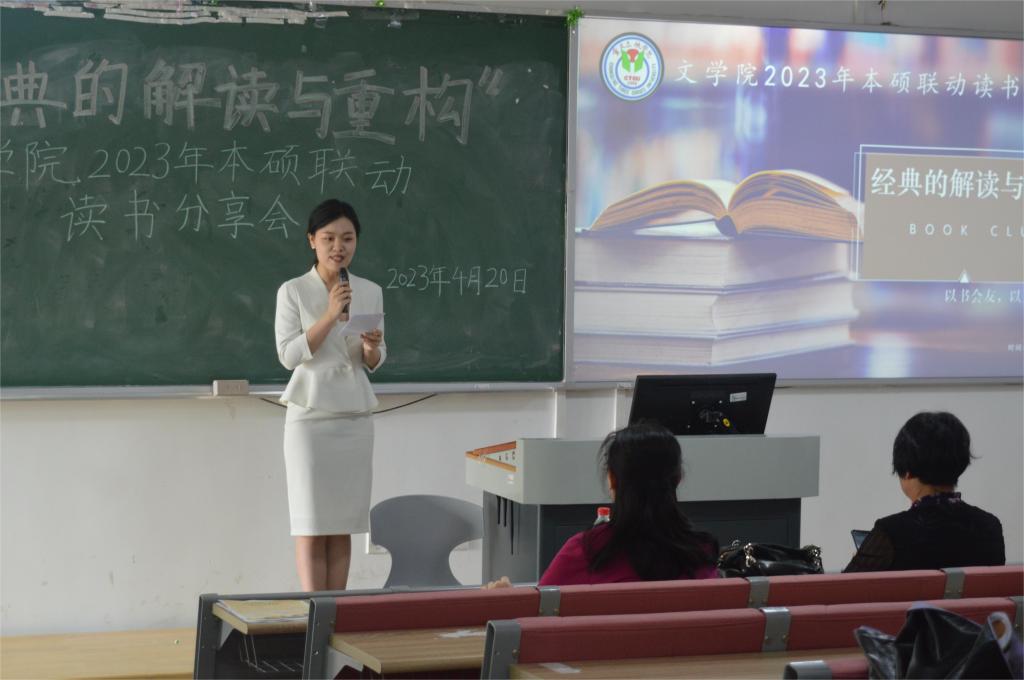 为进一步增强公司学子的阅读兴趣,提高阅读积极性,公司于2023年4月20日在博学楼一栋101室顺利举办“经典的解读与重构”本硕联动读书分享会。此次活动由周芳宇同学主持,太阳成集团tyc7111cc马婷副经理、外国语公司殷蜀红老师、国家级普通话水平测试员范良芹老师出席活动,2022级汉语言文学本科生与研究生参会。