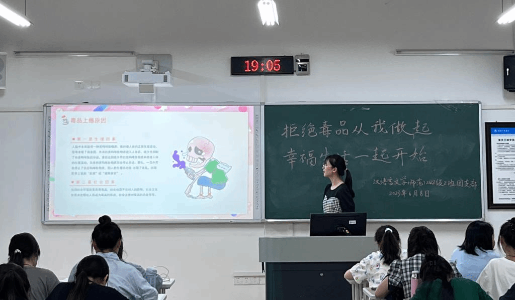 为引导同学们增强自我保护意识,认清毒品的危害,坚决抵制毒品,共同营造健康、和谐的校园环境。2023年6月9日晚,公司各年级举行了“拒绝毒品从我做起·幸福生活一起开始”主题班会。