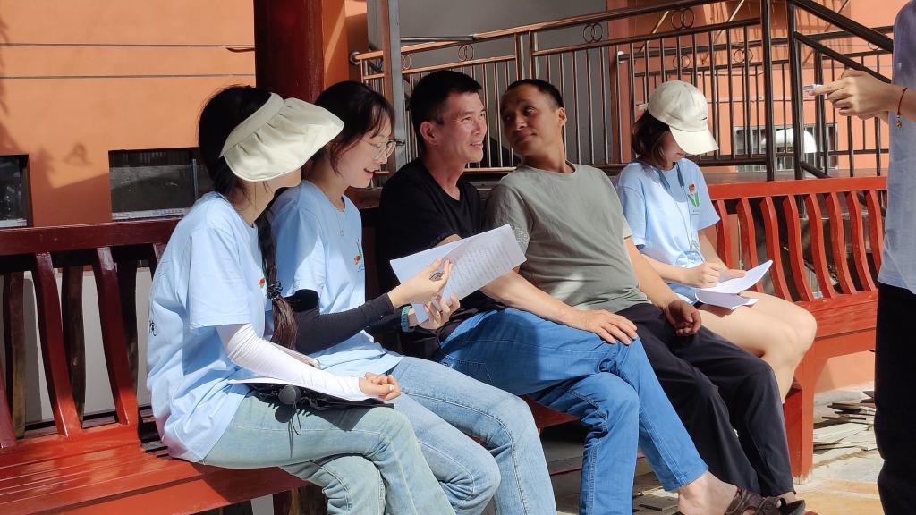 观察团成员与枫香村服务站中心的村民进行初步交流,了解了本村的发展情况。一对一向村民分发问卷,就罗田发展情况、对普通话的了解,普通话的运用程度、对推广活动形式的意见及推动城乡发展的个人建议等问题提问,村民根据实际情况和个人了解做出回答,调研期间气氛融洽和谐。随后,观察团成员向村民介绍了推广普通话的意义,使村民对普通话有了更详细的认识。最后,成员整合问卷调查信息,为更高效地开展普通话推广工作奠定基础。