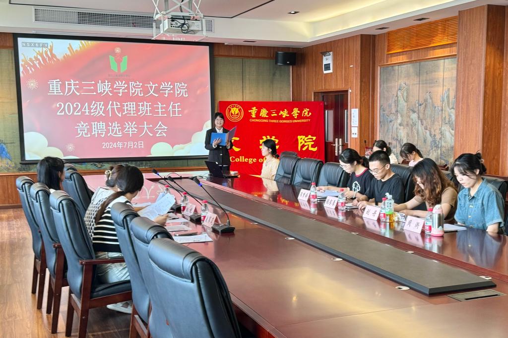 为促进员工工作高质量发展,给愿意服务学弟学妹的优秀员工提供展示自我、锻炼能力的平台。公司于7月2日下午在博学楼3栋404室举办了2024级代理班主任竞聘选举大会。学工办主任兼团总书记张悦、2022级辅导员熊维娟、2020级辅导员夏赛岚、第十一届主席团成员及12名竞聘者参会。