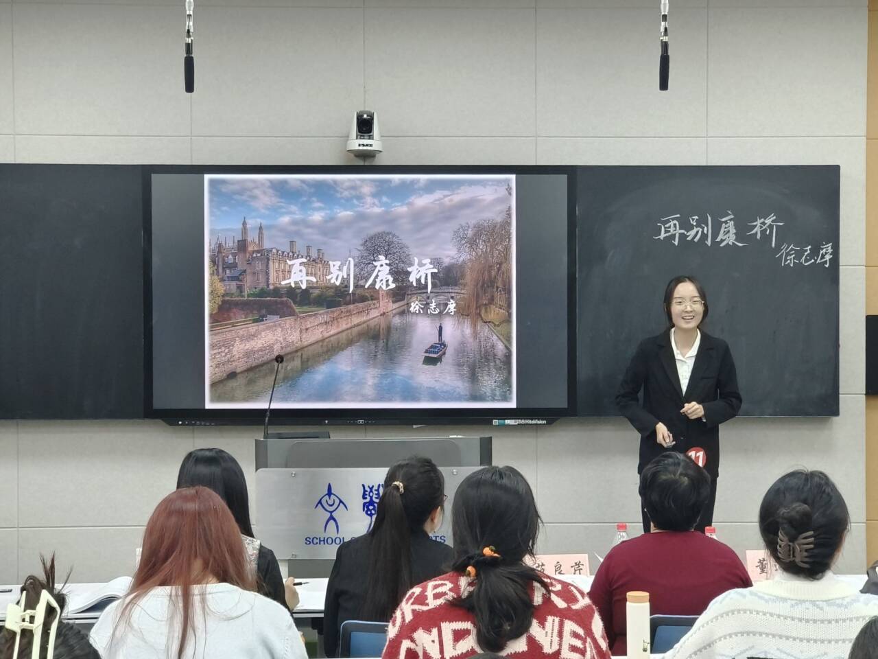 12位同学分别进行了教学设计展示。每位同学都准备充分,课程内容丰富、结构清晰,不仅涵盖了课程核心内容,还巧妙地融入了实际案例,展现出了深厚的专业功底和出色的教学能力。评委老师对每位同学的教学展示进行点评,提醒同学们在教学时要注意内容的取舍,教学设计要有核心,框架与内容要相符合,作业布置要有层次,做到教评一致,PPT图片选取要合适等,为师范生教学技能的完善和提高指明了方向。