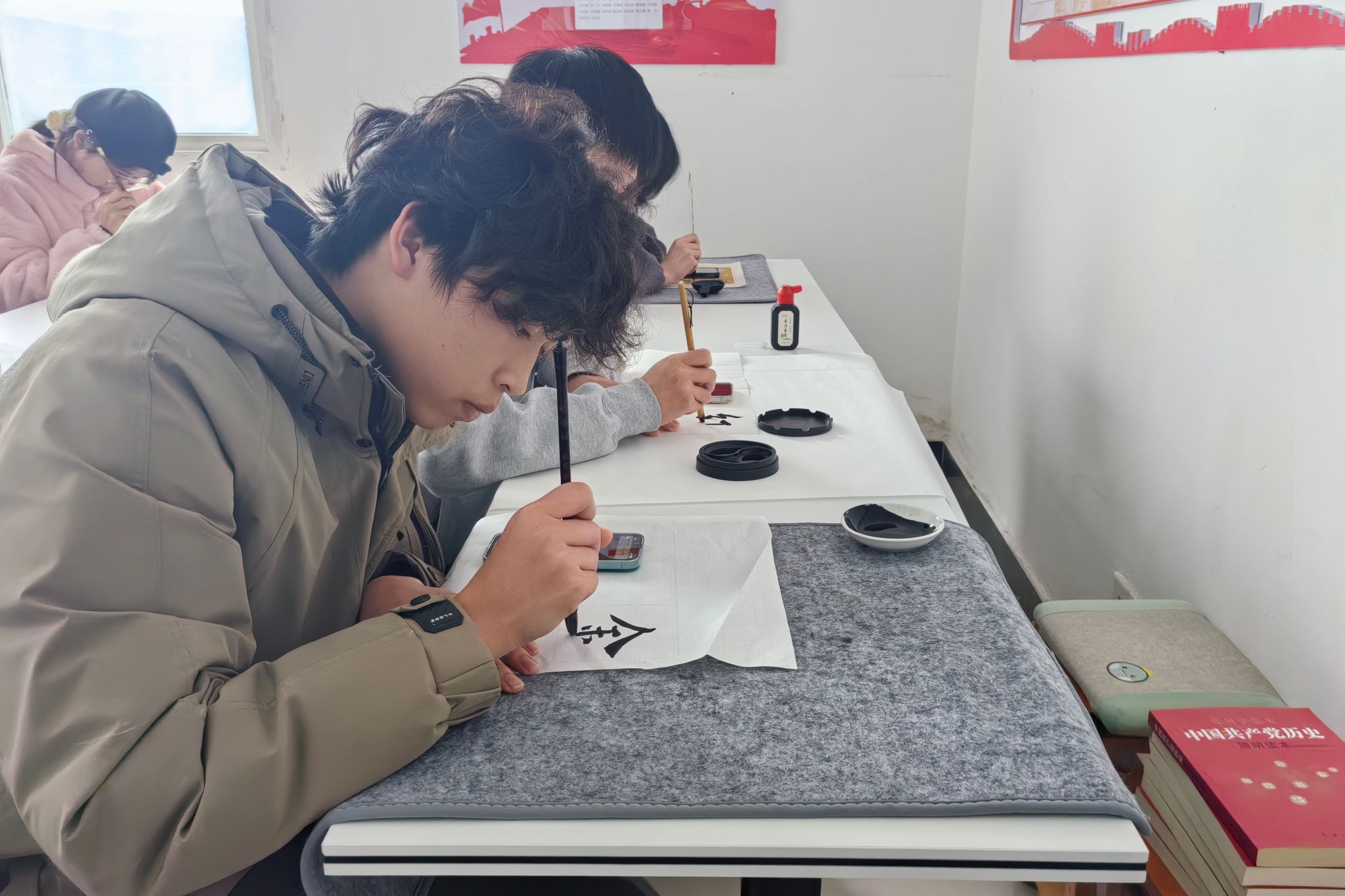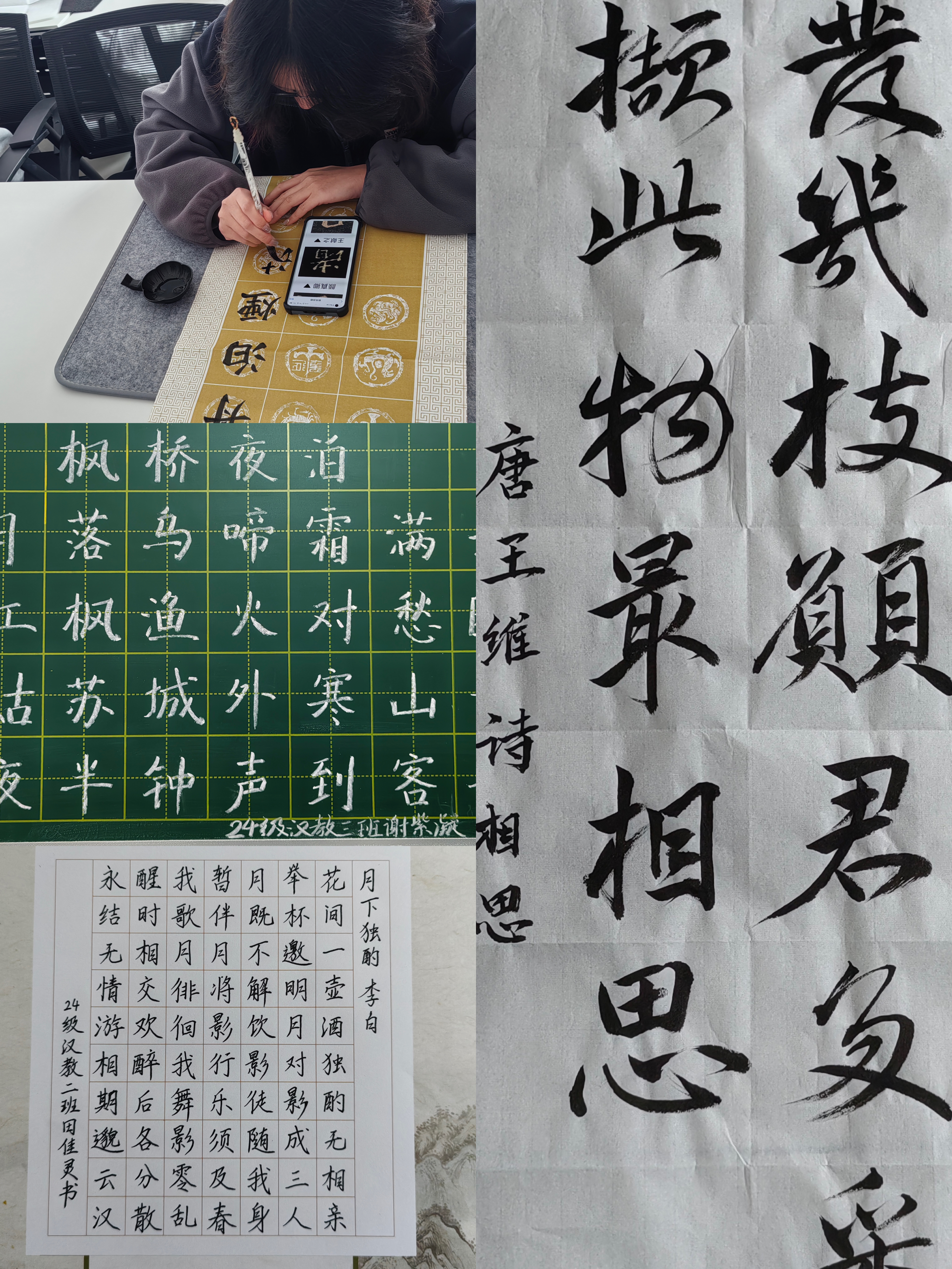 初赛结束后,毛笔字、钢笔字、粉笔字三个赛道共产生63件优秀作品。在线下书写环节中,活动分时段有序开展,内容丰富且形式多样。下午两点三十分,毛笔字书写环节率先开场。同学们执笔蘸墨,在宣纸上笔走龙蛇,或临摹经典碑帖,或即兴创作诗词短句,横竖撇捺间,尽显汉字的独特气韵与灵动之美。随后的钢笔字书写环节,参与者全神贯注,书写名言警句和优美散文,硬笔字迹工整清秀,展现了扎实的书法功底。最后的粉笔字书写环节别开生面,同学们以黑板为舞台,粉笔作刀锋,笔触轻重有致,布局疏密得当,一行行粉笔字,或苍劲挺拔,或端庄秀丽,各具特色。
