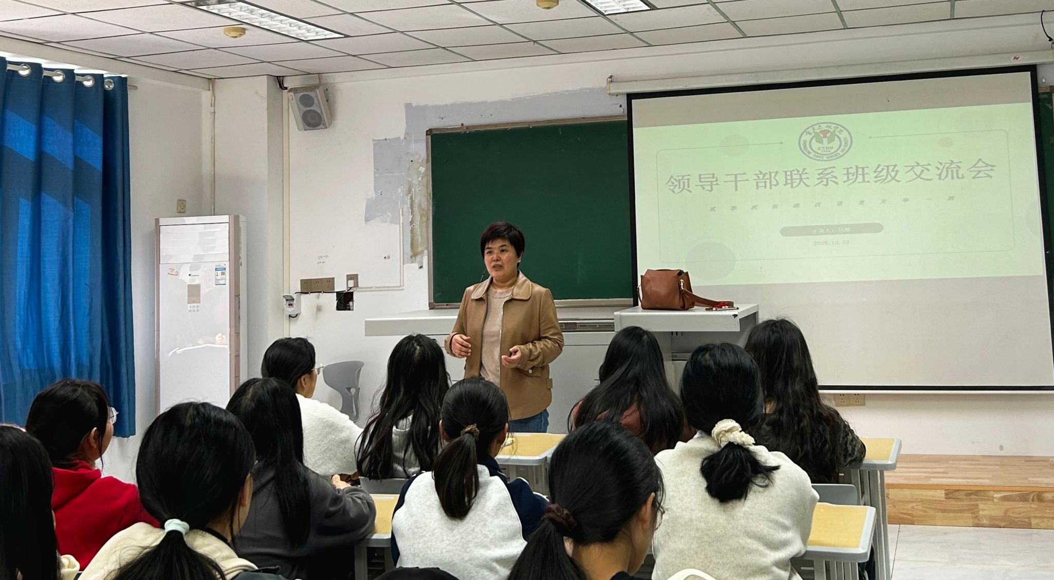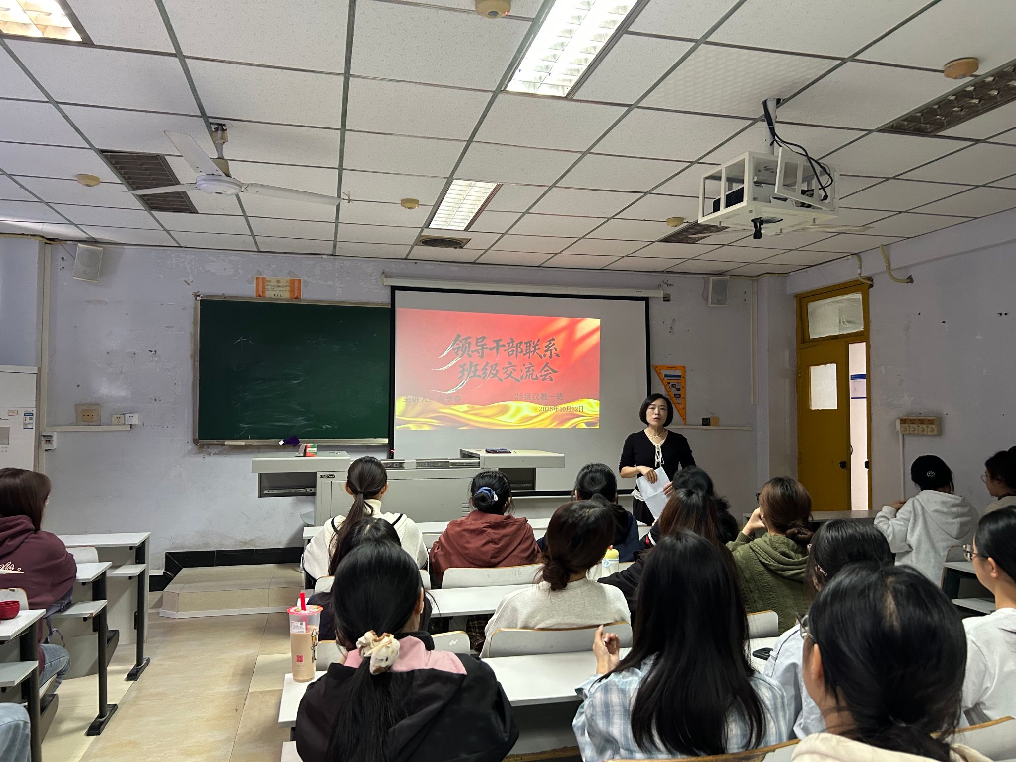 2025年10月22日,太阳成集团tyc7111cc在沙龙校区综合楼308室和310室举办领导干部联系班级交流会。公司党总支副书记、副经理马婷、副经理向学春分别与2025级汉语言文学1班、2025级汉语言文学(师范)1班员工开展交流。