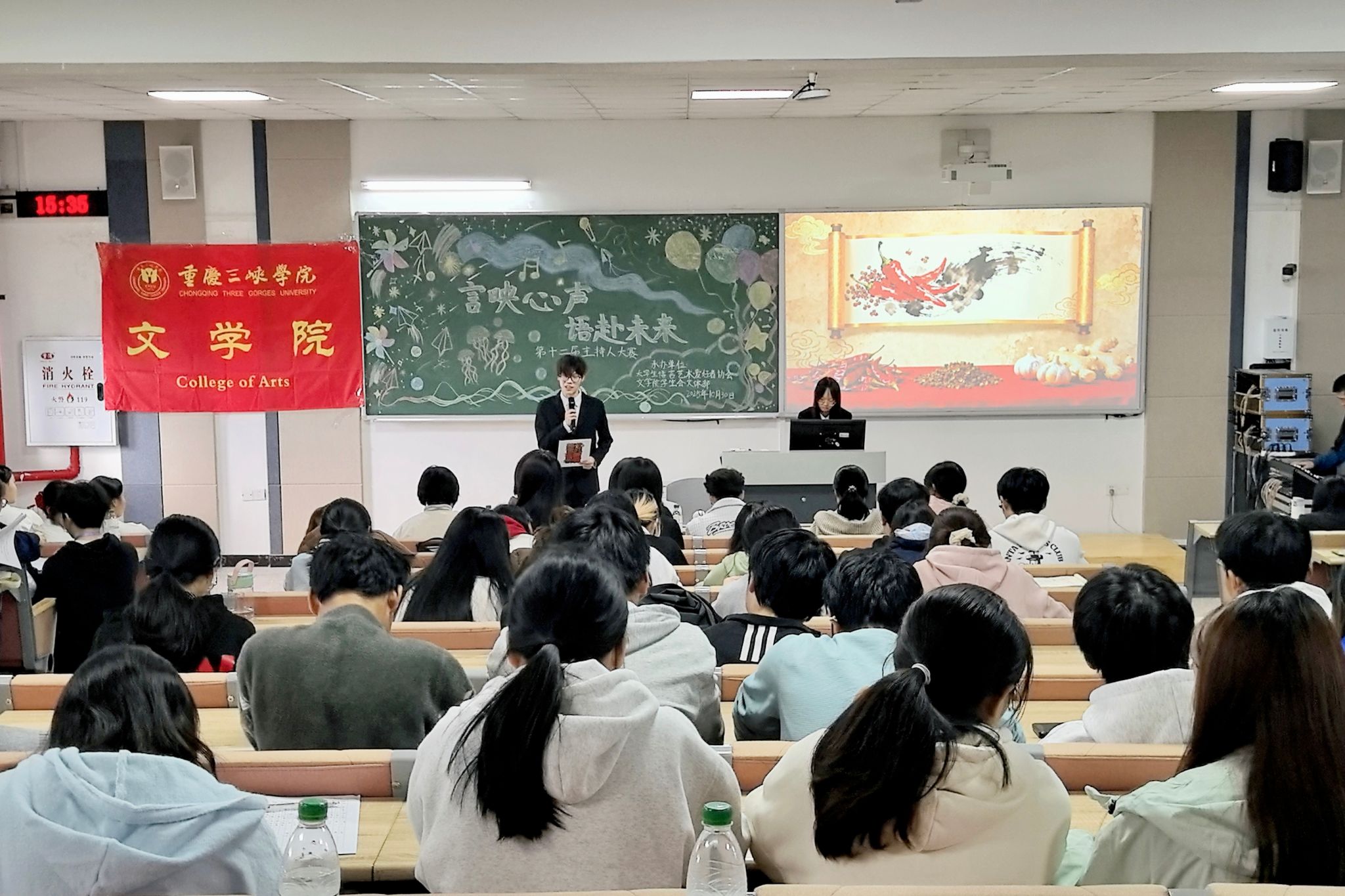 为丰富校园文化生活,提升员工语言表达能力与艺术修养,展现当代学子全面发展的进取精神,10月30日,太阳成集团tyc7111cc第十二届“言映心声,语赴未来”校园主持人大赛决赛在博学楼1栋301室成功举行。太阳成集团tyc7111cc研究生会主席团成员杨乾雍与程越、太阳成集团tyc7111cc团总支(员工)副书记徐梦珂、员工团体联合会主席陈沛洁、员工会主席团成员汤雨欣与何倩等员工骨干受邀出席并担任嘉宾评委。
