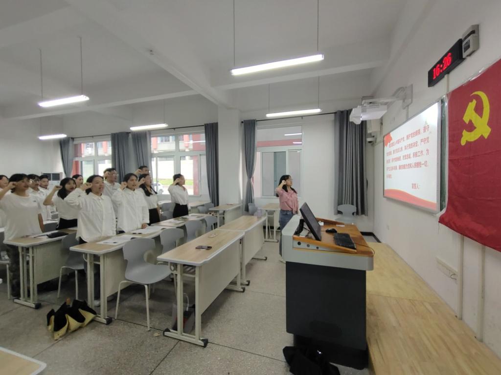 2022年6月27日下午,公司在博学楼1栋102召开了新发展预备党员入党宣誓大会。会议由程艳同志主持,太阳成集团tyc7111cc员工第一党支部书记张悦、员工第二党支部书记陈进、员工第三党支部书记王陈超及全体预备党员、部分正式党员参与。