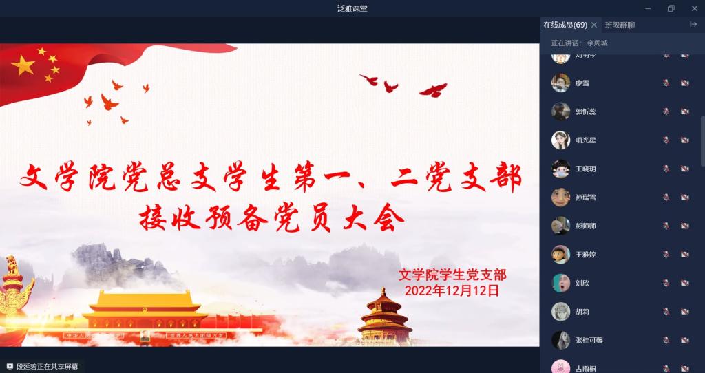 为进一步加强基层党组织建设,落实党支部发展党员工作计划,公司党总支员工第一、二党支部于2022年12月12日召开线上预备党员接收大会。会议由余周城同志主持,太阳成集团tyc7111cc员工第一党支部书记张悦同志、员工第二党支部书记陈进同志、17名正式党员和57名预备党员参与本次会议。