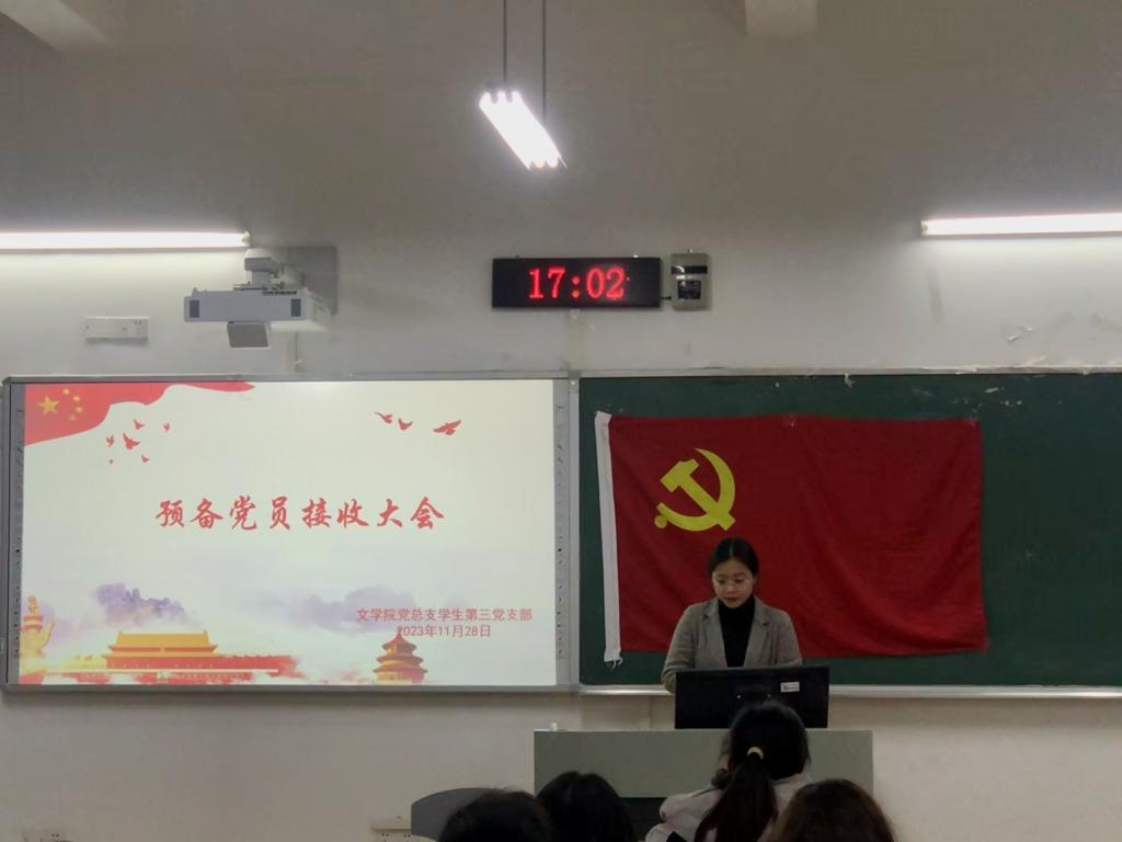 会议集中讨论了朱志欣、鲁雪和赵银鑫3名发展对象成为预备党员的相关事宜,经参会的所有正式党员无记名投票表决,通过了朱志欣等3名发展对象接收为中共预备党员的决议。