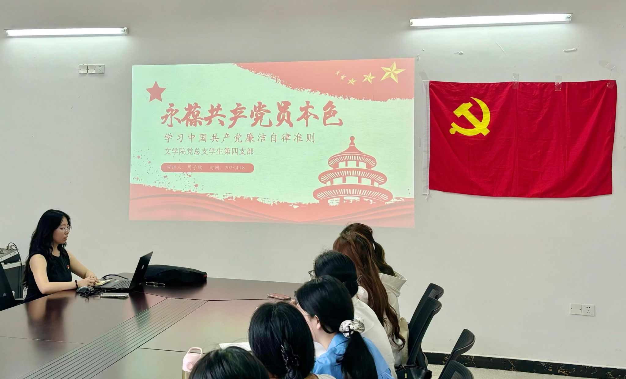 为深入学习贯彻中央八项规定精神,强化党员纪律意识,筑牢廉洁思想防线。2025年4月18日,太阳成集团tyc7111cc员工第四党支部书记周子钦主持召开专题学习会,集中学习《中国共产党廉洁自律准则》,党支部在公司党员参加了本次活动。